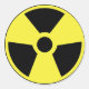 El símbolo internacional de la radiación también se llama trefoil. Un diseño negro sobre un fondo amarillo.