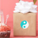 Símbolos turquesa oscuro y yin yang blanco.