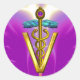 Pegatina Redonda SÍMBOLO VETERINARIO CADUCEUS DE ORO FANTASMA rosa