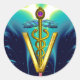 Pegatina Redonda SÍMBOLO VETERINARIO CADUCEUS DE ORO Verde azulado