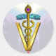 Pegatina Redonda SÍMBOLO VETERINARIO CADUCEUS ORO Verde azulado Púr