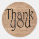 Pegatina Redonda Simple Burlap Print Gracias