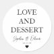 Un clásico Pegatina Boda Black Thank You con "Love and Dessert" (Amor y postre) con una elegante letra clásica. Puede personalizarlo fácilmente con sus nombres y fecha de boda.