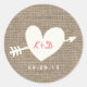 Pegatina Redonda Simple corazón y flecha Rústico Burlap Wedding Fav