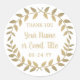 Pegatina Redonda Simple Corona de Laurel Blanca y Dorada Gracias