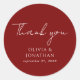 Simple Crimson Red Script Gracias Favor Boda Pegatina redondo clásico