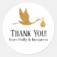 Pegatina Redonda Simple Faux Gold Stork Gracias! Baby Shower