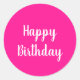 Pegatina Redonda Simple Feliz cumpleaños Hot Pink