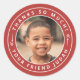 Estos pegatinas, sencillos y modernos, cuentan con la foto de su hijo en el centro, ¡con un marco de círculo rojo! Se incluyen plantillas de texto para facilitar la personalización. Dos pequeñas flechas le dan un toque único. ¡Ideal para los sellos para sobres, las etiquetas de los favores de cumpleaños y más!