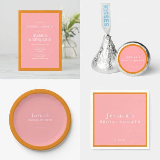Modern Pink and Orange Colorblock Bridal ShowerDiseñado por Opal Ellery