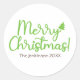 Pegatina Redonda Simple Green Script Feliz Navidad en Blanco