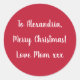 Pegatina Redonda Simple Merry Christmas from Mom Red and White