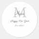 Pegatina Redonda simple minimal happy new year monogram gray name