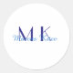 Pegatina Redonda simple minimal monogram personalized name blue ret