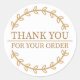 Expresar su gratitud con estos pegatinas de 'Gracias por tu pedido', que presentan una sofisticada corona de hojas de oro. La estética minimalista y la fuente serif clásica transmiten una sensación de elegancia y profesionalidad, perfecta para las pequeñas empresas que buscan añadir un toque personal a sus empaques. Estos pegatinas son ideales para sellar sobres, adornar cajas de regalo o adjuntar facturas, haciendo que cada interacción con el cliente se sienta especial. Eleva la presentación de tu marca y deja una impresión positiva duradera con estos pegatinas de agradecimiento atemporales.