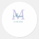 Pegatina Redonda simple mínimo añadir nombre monograma púrpura fech
