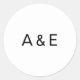 Pegatina Redonda Simple Monograma de Bodas con Ampersand en Blanco