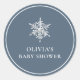 Pegatina Redonda Simple Nany Blue Modern Snowflake Baby Shower