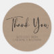 Nombre de guión simple personalizado Papel de kraft marrón Gracias Pegatina redondo clásico