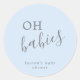 La moda y los mellizos modernos de bebé ducha favorecen a los pegatinas con un diseño mínimo que incluye el mensaje "Oh bebés" en letras de suero y letra y tu nombre y título del evento debajo, en gris, sobre un fondo azul claro. Las fuentes y los colores de fondo pueden cambiarse a los colores que desee pulsando el botón "personalizar". Estos elegantes pegatinas son perfectos para una ducha de bebé para los gemelos y le dan un toque personal a sus favoritos.