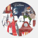 Pegatina Redonda Sinterklaas y Piet en los tejados de Amsterdam