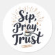 Pegatina Redonda Sip Pray Trust Café Y Jesus Lover