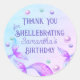 Pegatina Redonda Sirena de cola gracias por tener un cumpleaños sin