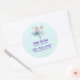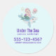 Pegatinas de negocios con un ilustracion adorable. Diseñado con un chica de sirena de bonito montando un delfín feliz. Un pequeño amigo de medusas los acompaña. Decorada con pequeñas manchas de purpurina de oro falso.