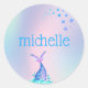 Pegatina Redonda Sirenita Pastel con arcoiris personalizada