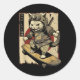 Pegatina Redonda Skateboard japonés samurai Cat Tattoo Kawaii Ninj