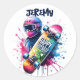 Celebre con estilo con nuestro personalizado monogramado pegatina redondo, con un patinador de moda vestido y sosteniendo su patineta. Este vibrante pegatina muestra el nombre del celebrante del cumpleaños con una audaz y llamativa fuente, capturando perfectamente el espíritu festivo. Ideal para los aficionados al patinaje, este pegatina le agrega un toque personal y divertido a la celebración del cumpleaños.