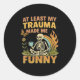 Pegatina Redonda Skeleton At Least My Trauma Made Me Funny