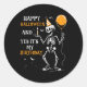 Pegatina Redonda Skeleton Feliz Halloween y Sí, es mi cumpleaños