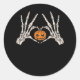 Pegatina Redonda Skeleton Hand Heart And Pumpkin Funny Skull Hallow