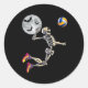 Pegatina Redonda Skeleton jugando voleibol feliz Día de Halloween B