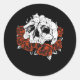 Pegatina Redonda Skeleton Kitten, Rosas del cráneo del gato