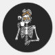 Pegatina Redonda Skeleton Messy Bun Coffee Drinking Halloween Costu