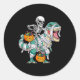 Pegatina Redonda Skeleton Riding Dinosaur T Rex Fun Niños Hallo