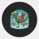 Pegatina Redonda Skeleton Santa Riding T Rex Dinosaur Funny Christm