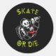 Pegatina Redonda Skeleton Skateboarder Grim Reaper