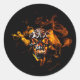 Pegatina Redonda Skeleton Skeleton en llamas retro muerto