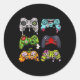 Pegatina Redonda Skeleton Zombie Gaming Controllers Halloween Gamer
