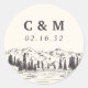 Pegatina Redonda Sketch de montaña | Monograma Boda personalizado
