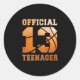 Pegatina Redonda Sketll 13th Birthday Official Teenager Boy 13 Year
