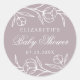 Elegantes pegatinas florales con flores blancas con flores esbozadas y hojas con un polvoriento fondo violeta. Personalice los pegatinas florales de ducha con su nombre y fecha. Los pegatinas florales son perfectos para sellar bolsos de bienvenida, sobres para invitaciones y mucho más. Diseñado para coordinar con nuestra colección Floral esbozada.