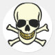 Gráfico de huesos con un cráneo usando gafas de sol y mostrando sus brillantes dientes. Pida una hoja de estos pegatinas y déselos en Halloween. ¡Ideal para clases o fiestas de Halloween para niños! Comprar a granel y ahorrar!! **Gráfico utilizado con permiso de la Nova Development Corporation**