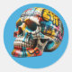 Abran la cultura urbana con este pegatina vibrante mostrando un cráneo con patrones de arte en el metro. Ideal para decorar tu estuche de teléfono, botella de agua o portátil.