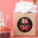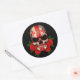 Pegatina Redonda Skull de la bandera georgiana con rosas rojas