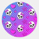 "Skully Pop Kawaii" Este diseño lúdico y atrevido presenta una vibrante mezcla de tonos pastel violeta, rosa y azul en un fondo de tablero de ajedrez degradado. A lo largo del patrón, hay cráneos de estilo personalizado adornados con arcos rosados, lo que les da un toque bonito aunque inspirado en el punk. Acompañando a los cráneos hay audaces corazones rosados y estrellas moradas delineadas, añadiendo un toque divertido y caprichoso. La estética general combina elementos de la cultura kawaii y emo-pop.