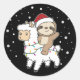 Pegatina Redonda Sloth Lama Navidades Nieve Animales de Invierno Cl